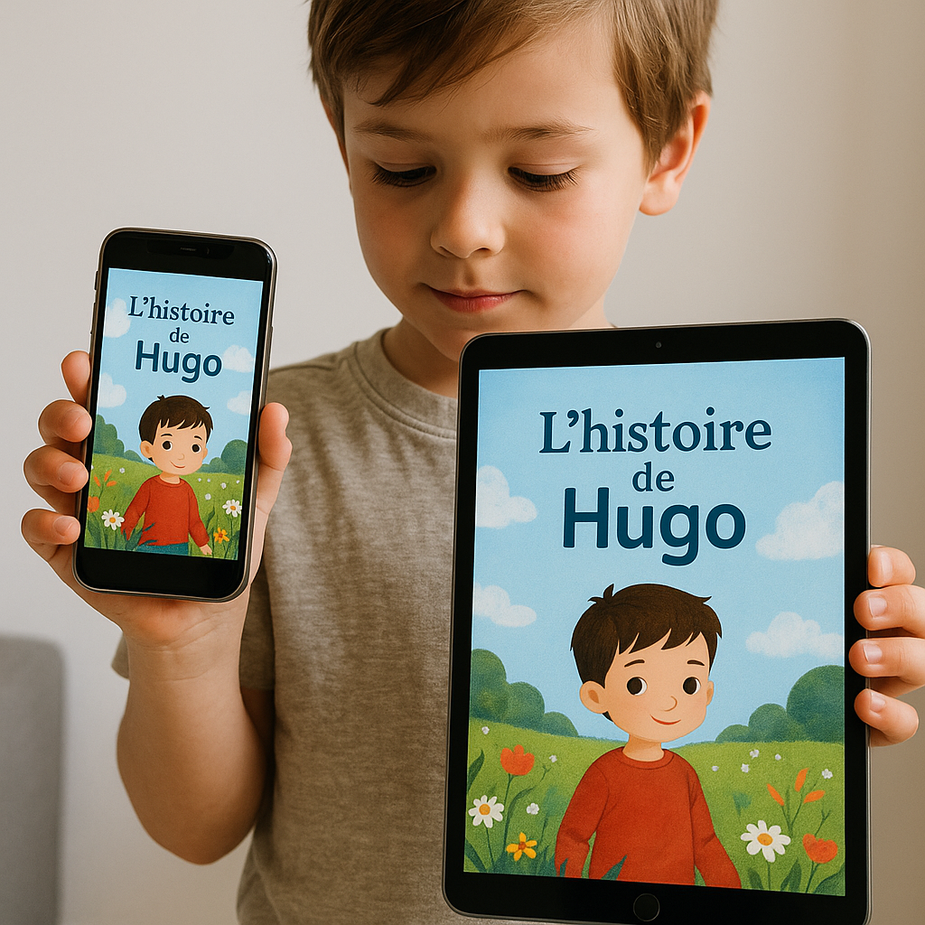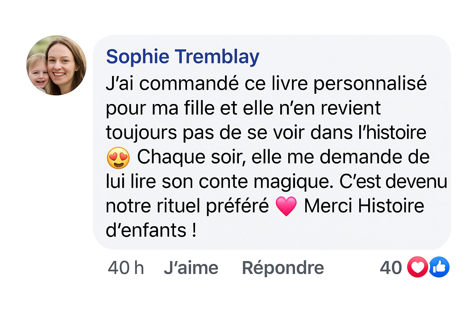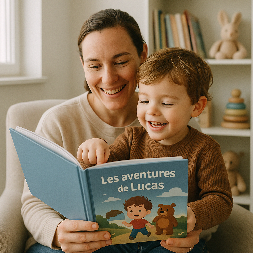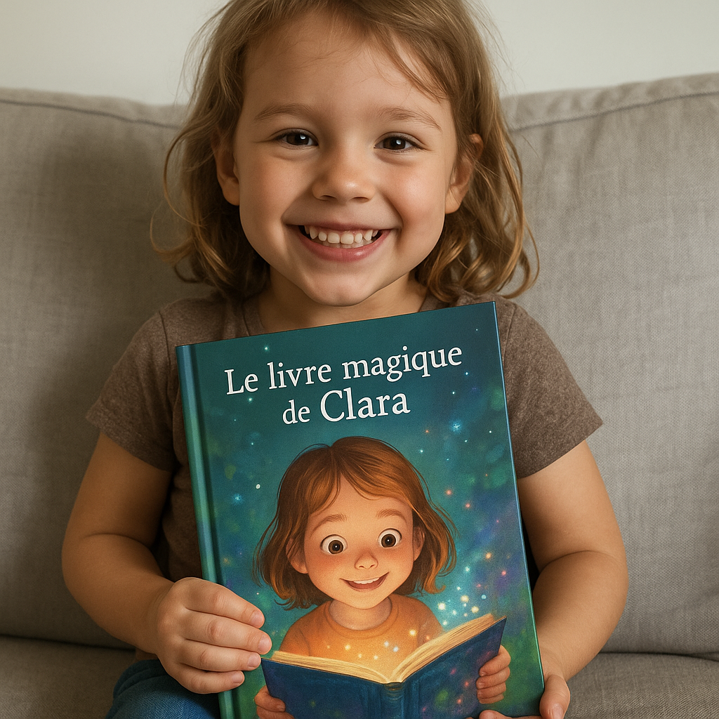 L’enfant est placé au cœur de la scène (style Pixar). Vous validez le rendu avant l’achat.