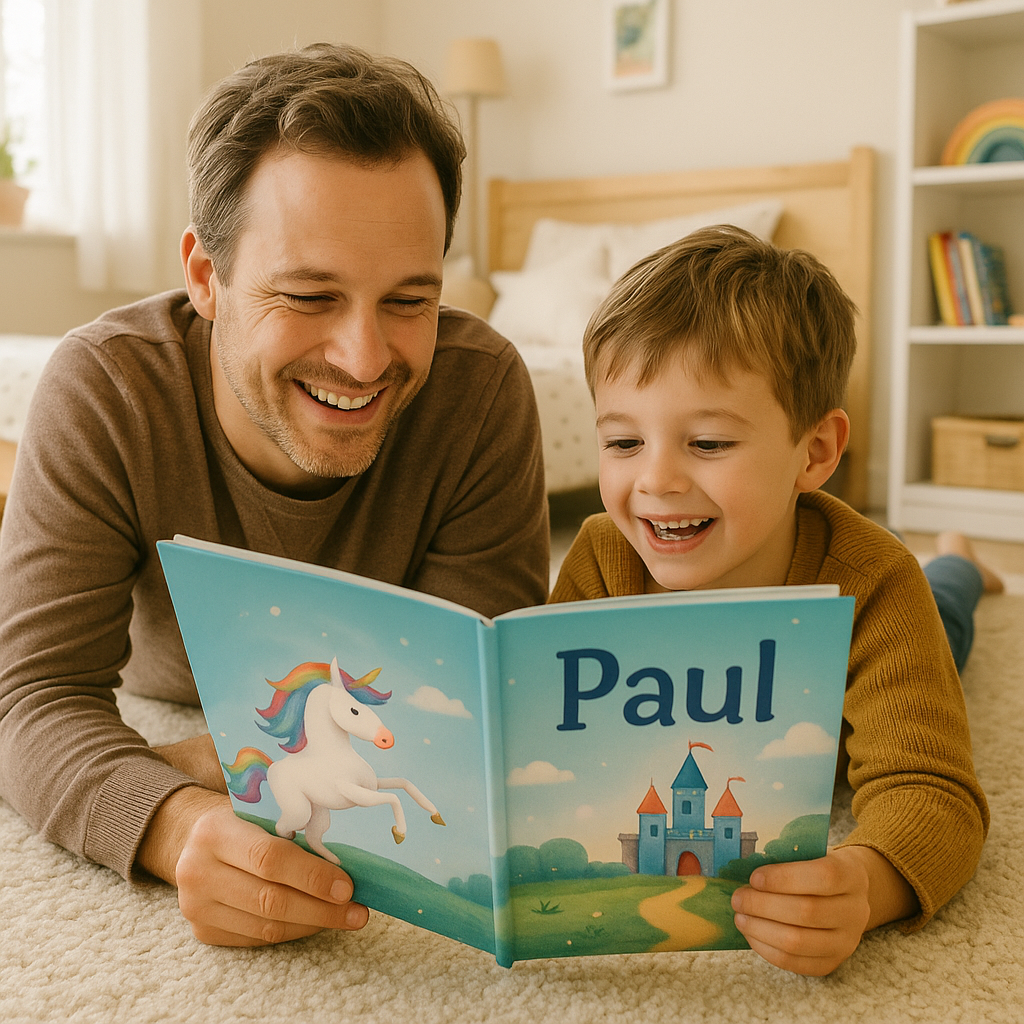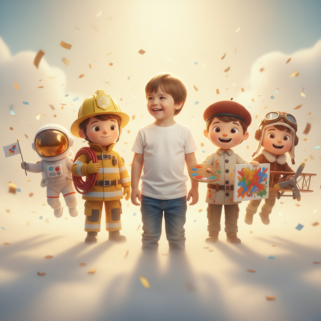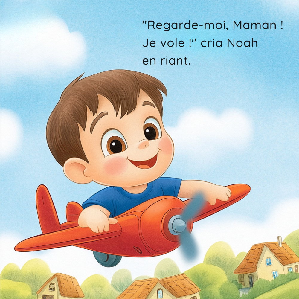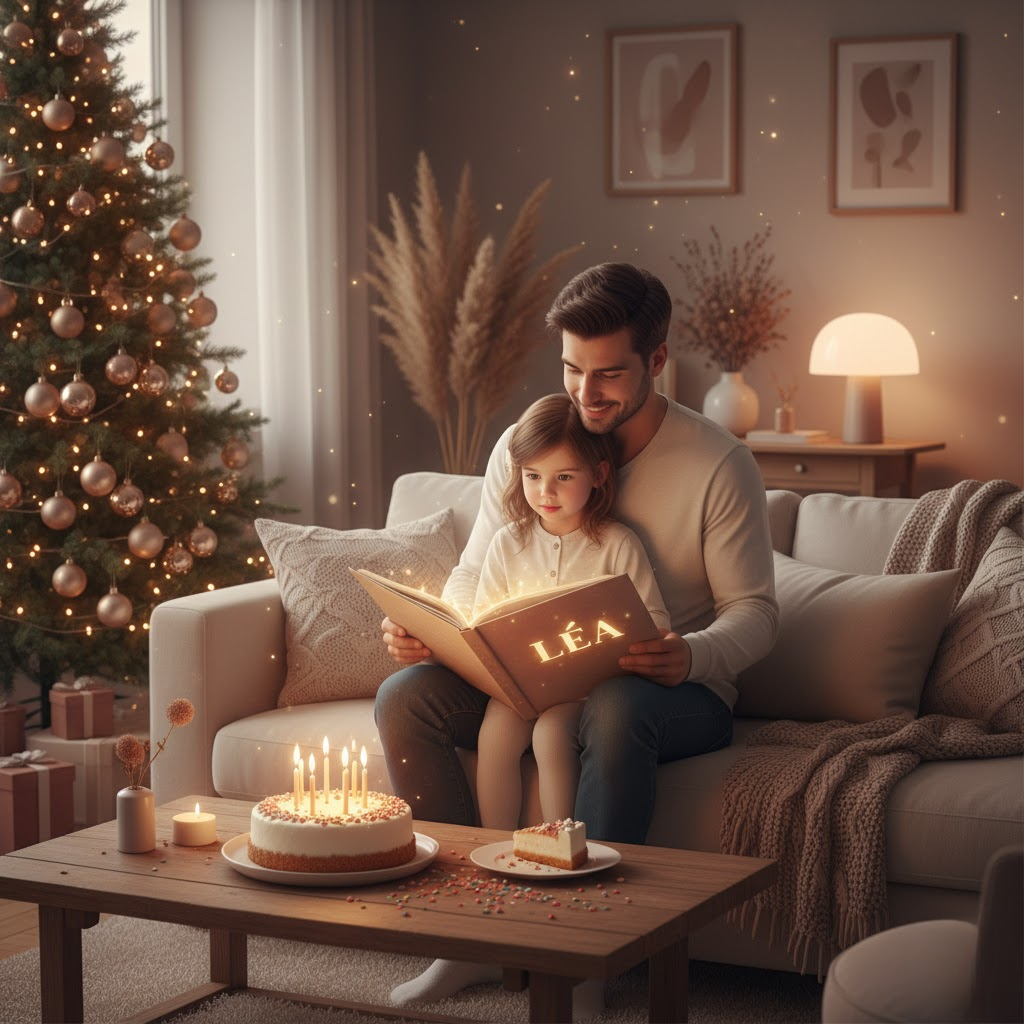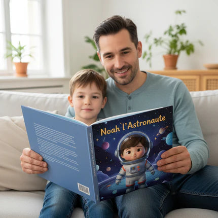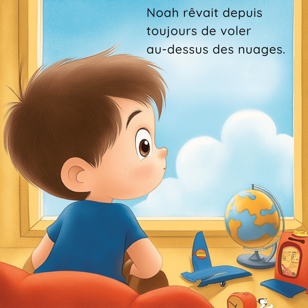 L’enfant est placé au cœur de la scène (style Pixar). Vous validez le rendu avant l’achat.
