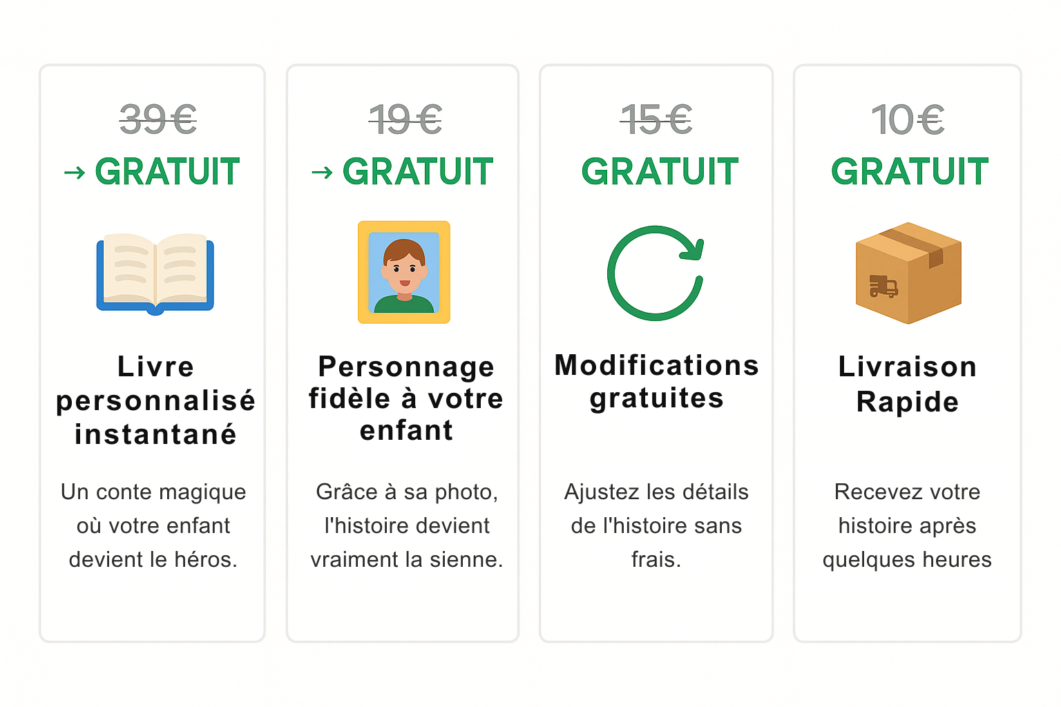 Choisissez son univers, ajoutez sa photo, et découvrez un aperçu personnalisé en quelques secondes !