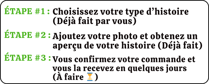 Finalisez votre commande d'histoire personnalisée 👇🏼