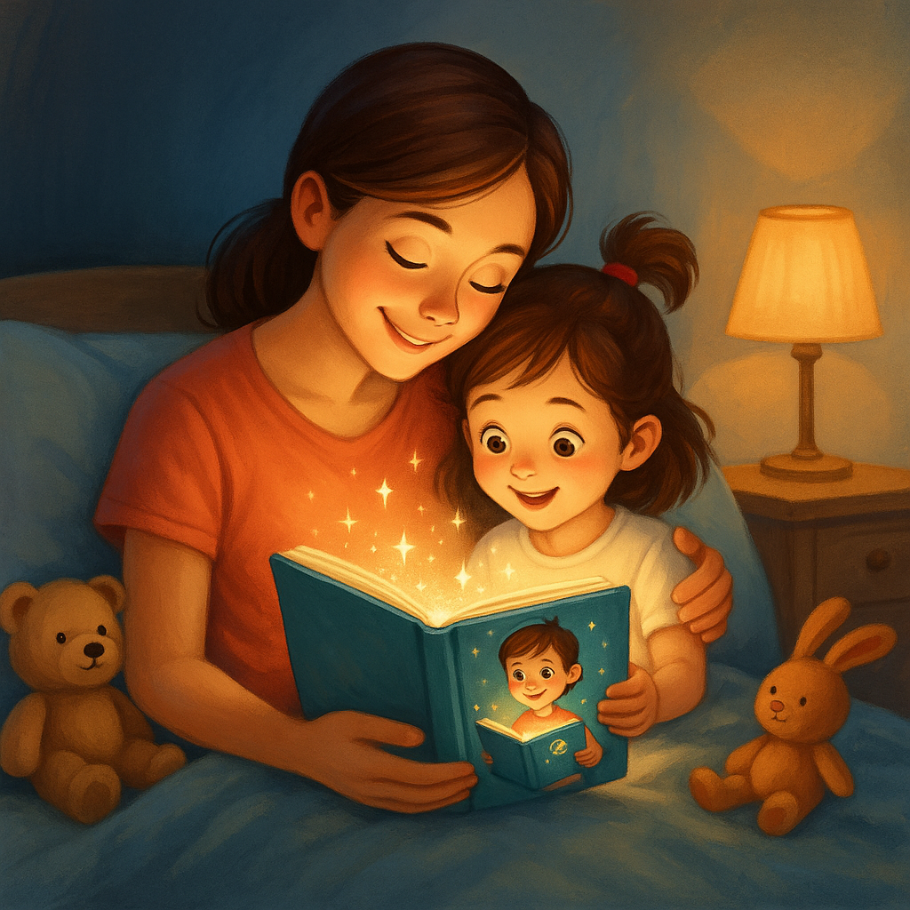 Un moment de complicité : lire ensemble devient un rituel doux et magique, renforçant le lien parent-enfant.